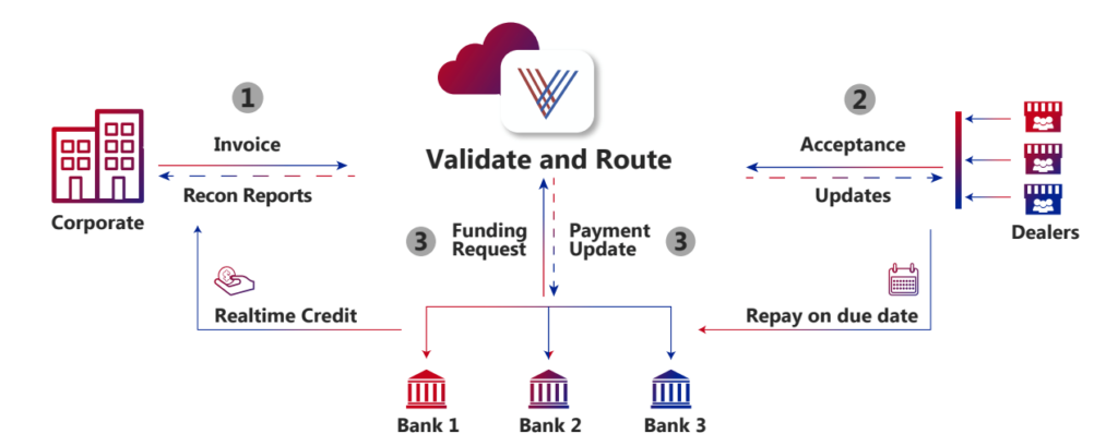Vayana’s Integrated Dealer Finance Solution is a simple integration for corporates that dramatically increases financing coverage and utilization across your distribution channel – thus addressing cash flow and sales unpredictability. What’s more, transactions, reconciliations, and reviews with multiple banks are effortlessly streamlined through this single window.